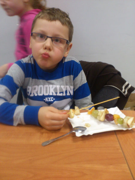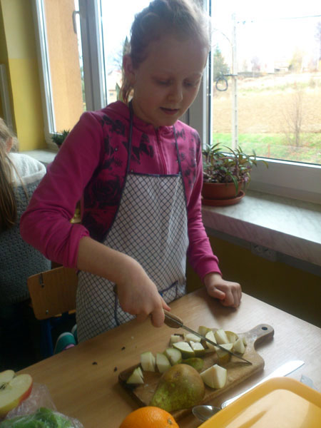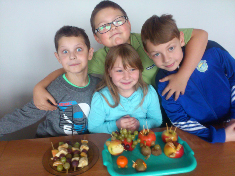 Uczniowie klasy III w ramach programu „Owoce i warzywa w szkole” również przygotowywali zdrowe i smaczne posiłki. Nasi wychowankowie wykonywali kolorowe sałatki, owocowe szaszłyki, różne zabawne postacie z owoców i warzyw oraz innych produktów niezbędnych dla naszego organizmu.